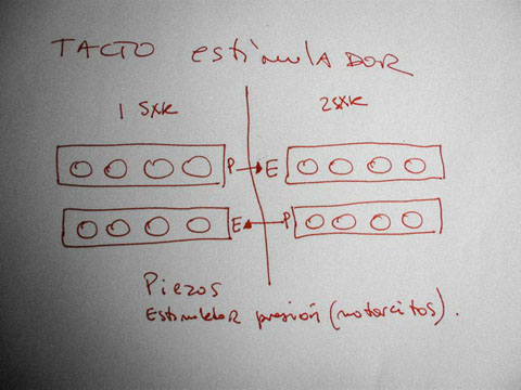 Output and input data circulating between the SXK are translated and processed through Arduino.The continuous feedback process generates a relational situation: each person sends the other permanent corporal stimulus, which turn back in a corporal answer.